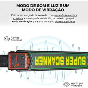 - Detecção Precisa: Identifica tanto metais grandes quanto pequenos com opção de aviso sonoro, luminoso ou vibratório. Uma ferramenta versátil e eficaz para todas as suas necessidades de segurança.
