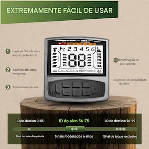 Detector Metal Ouro Profissional Tela LCD À Prova D’Água M55J#DESCRIÇÃODescubra tesouros ocultos com o Detector de Metal M55J, uma ferramenta de detecção versátil e fácil de usar, ideal para encontrar moedas, joias, relíquias e metais preciosos como ouro e prata.Principais Características:1 - Tela LCD de Alta Visibilidade: Exibe informações em tempo real como tipo de metal detectado, profundidade, sensibilidade e modo de operação. Fácil leitura mesmo sob sol forte.2 - Bobina à Prova d’Água – 28cm de Diâmetro: Ideal para detecção em solos úmidos, praias, margens de rios ou locais com poças d'água. (A haste e a bobina são à prova d'água, porém o painel de controle não pode ser submerso.)3 - Leve e Ajustável: Peso de apenas 1050g, com comprimento ajustável de 50cm a 125cm, garantindo conforto durante longas buscas.4 - Modos de Detecção Personalizados: Permite ajustar a sensibilidade e discriminar diferentes tipos de metais, evitando escavações desnecessárias.5 - Fácil Transporte e Armazenamento: Estrutura telescópica dobrável, perfeita para levar em aventuras ao ar livre.#CARACTERÍSTICASModelo: M55JProfundidade de Detecção: 7 a 10cmComprimento Máx: 125cmComprimento Mín: 50cmPeso do produto: 1050gFonte de Alimentação: Pilha 9V (não inclusa)Estática: 20 mADinâmica: 50 mAFrequência: 5,8 +/-0,5 kHzFrequência sonora: 3 tipos de frequência que indicam diferentes metaisIndicação de volume: 3 grausLuz de fundo do LCD: BrancoIndicação da bateria: 4 grausBobina de busca: bobina de busca à prova d'água#APLICAÇÕESCaça ao tesouro na praiaExploração de rios e lagos Busca de pequenos objetos metálicos perdidos em solos, areia ou áreas alagadas#CONTEÚDO DA EMBALAGEM1 Detector de Metais1 Manual de Instruções Marca: Não Informado