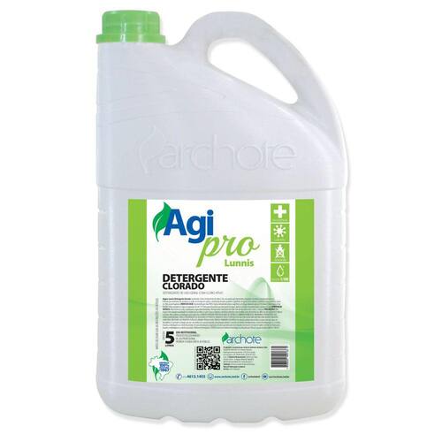 Agipro Lunnis Detergente Clorado é produto concentrado, de ampla aplicação. Possui alto poder sanitizante e desengordurante. Possui alto rendimento e formação de espuma. Limpa e desinfeta em uma única operação removendo eficazmente resíduos alimentares e gordurosos comuns em cozinhas como: gordura vegetal e animal, etc.. Possui agente anti redepositante que impede que a gordura e a sujeira se depositem novamente, durante a limpeza, sobre a superfície limpa. Por ser um produto concentrado permite altas diluições, sem perder a qualidade e rendimento, proporcionando excelente custo-benefício.