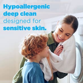 - Hipoalergênico: detergente hipoalergênico para a roupa. Feito sem resíduos irritantes, sem corantes e sem perfumes