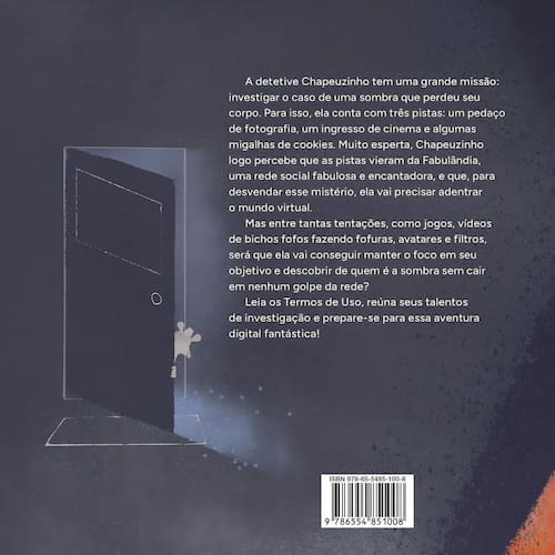 A detetive Chapeuzinho está em ação! Ela precisa resolver seu mais novo caso: o mistério da sombra que perdeu seu corpo. Será que ela vai conseguir desvendá-lo? Depois de ser enganada pelo Lobo Mau na casa da Vovó, Chapeuzinho Vermelho decidiu se tornar uma superdetetive. A melhor do Reino Encantado, ela ajuda todo mundo a não cair em truques e golpes de lobos e outros espertinhos por aí. Sua nova missão é bem diferente: ela precisa ajudar uma sombra que perdeu seu corpo. Para resolver esse enigma, Chapeuzinho conta com três pistas que a levam até a Fabulândia, a rede social mais encantada de todas! Mas, com tantas distrações do mundo digital, será que ela vai conseguir focar em sua missão e encontrar o corpo perdido da sombra? Dos mesmos autores de A eleição dos bichos, sucesso de vendas publicado em mais de dez países, o novo livro do coletivo Sabichinho narra uma investigação divertida e cheia de reflexões sobre o uso saudável das redes sociais. Com ilustrações criativas e uma abordagem leve e descomplicada, o livro mostra para pequenos e grandes leitores a importância do cuidado com a segurança de dados e a privacidade digital. Indicado para leitores a partir de 9 anos.