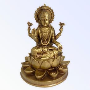 Deusa Lakshmi na Flor de Lótus Resina - Escolha Modelo e Cor A Deusa Lakshmi da Bialluz representa a sabedoria, a fortuna, o intelecto e a prosperidade. Nossa Escultura Deusa Lakshmi trará muita sabedoria e luz em sua vida. Emanará muitas energiass positivas em seu ambiente e afastará todas incertezas. Confeccionada em resina nossa escultura tem alta durabilidade e detalhes muito bem feitos que compõem a belíssima qualidade dessa peça. Escolha um dos modelos disponíveis na opção COR do próprio anúncio. Enviamos a sua escultura em até 24 horas após a confirmação de pagamento! Material: Resina Por ser uma peça feita artesanalmente e pintada à mão podem ocorrer pequenas variações nas cores ou tamanhos. Caso tenha alguma dúvida nos mande mensagem que respondemos rapidinho para te ajudar da melhor forma possível! Marca: META ATACADO