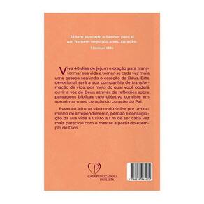 Através de reflexões sobre passagens bíblicas, este livro irá aproximar seu coração do coração do Pai. São 40 leituras que irão conduzi-lo por um caminho de arrependimento, perdão e consagração da sua vida a Cristo. O objetivo é se tornar cada vez mais parecido com o Mestre, tomando como exemplo a vida de Davi.