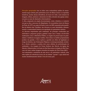 Devoções apropriadas traz ao leitor uma contundente análise do monumental saque sofrido pelo patrimônio sacro de Minas Gerais e as repetidas tentativas, muitas dessas infrutíferas, de trazer de volta o sem número de imagens, alfaias, pinturas e elementos de talha retirados das igrejas mineiras para as casas de abastados colecionadores.