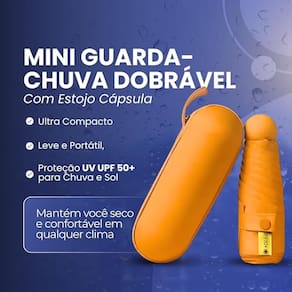 ? Proteção Completa em Qualquer Clima Perfeito para dias chuvosos ou ensolarados, com revestimento especial que bloqueia os raios UV (UPF 50+). 🎒 Ultra Compacto e Leve Pesando cerca de 300g, cabe facilmente na bolsa, mochila ou até mesmo no bolso. 🌀 Design Dobrável e Moderno Estrutura dobrável que facilita o uso e o armazenamento, ideal para o dia a dia e viagens. 📦 Acompanha Estojo Cápsula Estojo resistente e estiloso combinando com a cor do guarda-chuva, para guardar e transportar com praticidade. ? Abertura e Fechamento Rápido Mecanismo simples que permite abrir e fechar com facilidade em qualquer situação. 🎁 Ótima Opção de Presente Prático, bonito e funcional – perfeito para quem valoriza utilidade com estilo.
