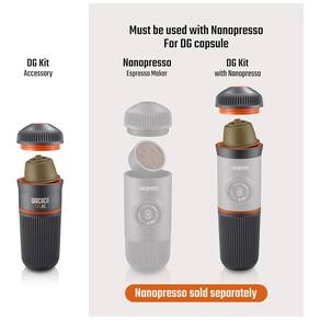 O kit DG é apenas um acessório para WACACO Nanopresso Permite que o Nanopresso seja compatível com Nescafé Dolce Gusto para preparar café expresso e outras bebidas de café como latte, cappuccino, macchiato...Marca de terceiros sem vínculo com a Wacaco Company Limited. A vantagem de usar essas cápsulas é que há uma grande variedade de bebidas disponíveis e são muito fáceis de preparar. Há muito pouco para o erro, então sua bebida é deliciosa todas as vezes. As cápsulas são convenientes, sem bagunça e mais fáceis de limpar após o uso. Nota Devido à limitação do caudal de água do Nanopresso e da capacidade do depósito de água, a concentração do café e, portanto, os sabores das bebidas extraídas podem diferir dos preparados com as máquinas domésticas. Para certos tipos de bebidas, você não poderá seguir as instruções sobre a quantidade necessária de água a ser usada, conforme sugerido na embalagem da cápsula, a menos que você encha o tanque de água algumas vezes. O pacote não inclui máquina de café expresso portátil Nanopresso Marca: Não Informado
