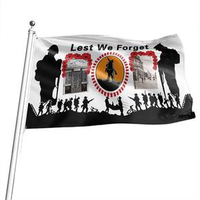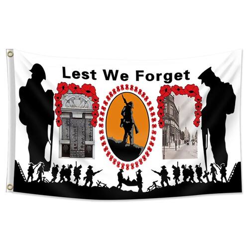 Material: poliéster (pongee) Tamanho: 150 cm × 90 cm Peso: 120 g Design de lembrança: apresenta a poderosa frase “Para que não esqueçamos”, cercada por papoulas vermelhas e silhuetas de soldados, homenageando aqueles que serviram e se sacrificaram. Poliéster de alta qualidade: feita de poliéster durável, esta bandeira é resistente ao desbotamento e feita para exibição duradoura em ambientes internos e externos. Perfeito para eventos de lembrança: ideal para comemorar o Dia da Lembrança, memoriais militares e homenagear veteranos e heróis caídos. Nenhum mastro de bandeira incluído: esta bandeira não vem com um mastro, mas foi projetada para caber em mastros padrão ou ser pendurada de forma independente. Tamanho e especificações: mede 3 pés por 5 pés (90x150 cm), perfeito para exibições públicas ou configurações de memoriais pessoais.