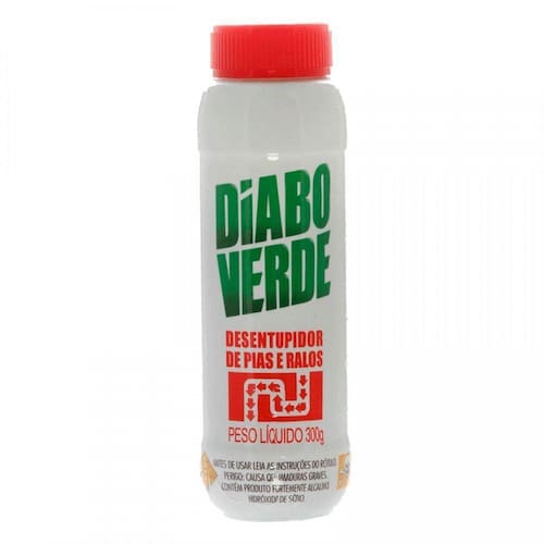 O Diabo Verde é um desentupidor eficaz de pias e ralos, evitando transtornos com entupimentos e com custo benefício ótimo, poupando o serviço de encanador. Necessário utilizar equipamentos de proteção como luvas e óculos.