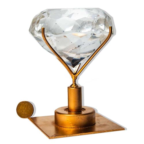 Importante:Esta peça é um cristal de quartzo e não se trata de material carbono cristalizado (com fórmula química C), normalmente utilizado em joalheria tradicional.