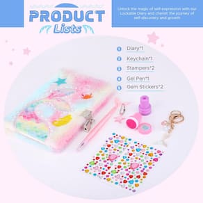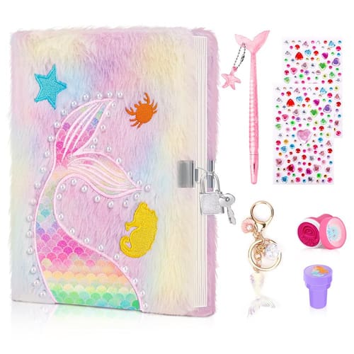 homicozy Diário de sereia com cadeado e chaves para meninas, diário secreto de pelúcia para crianças com 160 páginas forradas, caderno de bloqueio fofo de capa dura para escrever e desenhar, presentes fofos e felpudos para meninas de 4 a 10 anos Nosso diário felpudo de sereia é projetado especialmente para meninas, este diário encantador é o companheiro perfeito para capturar seus pensamentos, sonhos e aventuras. Capa felpuda ultra-macia: a capa felpuda do nosso diário adiciona uma experiência tátil agradável. Sua textura macia e felpuda convida as mãos pequenas a passar os dedos pela superfície, proporcionando conforto e calor enquanto escreve ou esboça. Papel de qualidade para escrever e desenhar: o diário fofo é completo com papel de alta qualidade, grosso e liso para garantir uma experiência agradável de escrita e desenho. Seja anotando pensamentos, criando arte ou rabiscando, as páginas deste diário são uma tela para criatividade infinita. Fechaduras e chaves seguras: a privacidade é essencial para todas as queridas garotas, e é por isso que nosso diário vem com uma fechadura e chaves seguras. Tenha certeza de que seus segredos, sonhos e aspirações permanecerão seguros de olhares curiosos. Portátil e adequado para viagens: projetado para ser convenientemente dimensionado, este caderno para meninas cabe facilmente em mochilas escolares, bolsas ou mochilas. Quer estejam em férias em família, brincadeira ou simplesmente capturando seus pensamentos em movimento, este diário será seu companheiro constante. O presente perfeito para meninas de 4 a 10: surpreenda sua filha, sobrinha, neta ou qualquer garota especial em sua vida com o diário da sereia. É um presente encantador para aniversários, feriados ou qualquer ocasião, adicionando um toque de encantamento às suas vidas. Acenda sua imaginação e criatividade com nosso diário felpudo com padrão de sereia hoje. Liberte a magia que está dentro de seus corações e deixe-os capturar seus sonhos neste diário caprichoso. - Características: este diário para meninas apresenta um design de pelúcia exclusivo com padrões delicados de sereia bordados, textura macia e felpuda e cores vibrantes tie-dye, tornando-o um favorito instantâneo entre meninas e entusiastas de sereia. Os papéis internos são grossos, lisos e têm uma forte encadernação, não é fácil rasgar ao usá-los. - Companheiro criativo: este diário encantador para meninas é o companheiro perfeito para mentes criativas! Com 160 páginas pautadas bem encadernadas e um tamanho A5 bem encadernado, não é apenas fácil de carregar para qualquer lugar, mas também oferece amplo espaço para escrever seus pensamentos, sonhos e ideias. - Proteja seus segredos com facilidade: guarde seus segredos com este diário felpudo! Equipado com uma fechadura, você pode manter suas reflexões privadas seguras e protegidas sempre que não estiver usando. A trava é projetada para fácil acesso, facilitando a abertura sem ajuda. - O conjunto inclui: Este conjunto de diário completo inclui 1 diário para meninas com cadeado e chaves, 2 adesivos de pedras preciosas e 2 peças de carimbos de sereia para personalizar o diário de suas meninas, 1 caneta de gel para escrita vibrante, 1 chaveiro para segurar chaves. Suas meninas podem registrar experiências de vida, esboçar belas paisagens e capturar momentos memoráveis durante suas viagens com este conjunto de diário de sereia. - Presentes para meninas a partir de 3 anos - Este lindo diário adota personagens de sereia e cores atraentes. Seria um presente ideal para qualquer criança que goste de escrever e desenhar.