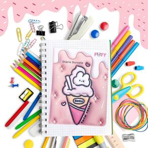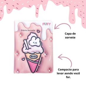 Diário rosa de sorvete tamanho m com páginas decoradas fofy