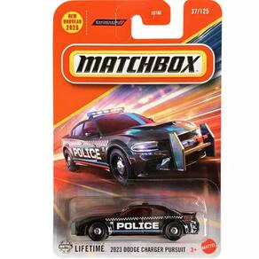 - Modelo coletável: veículo policial Dodge Charger Pursuit 2023 em acabamento preto elegante, parte da série Matchbox numerada 37/125