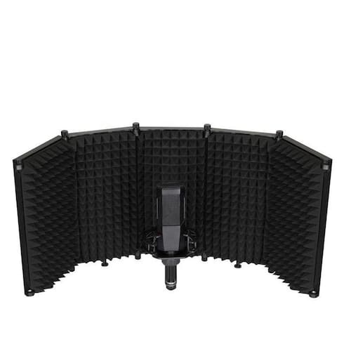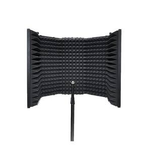 solução perfeita para gravar vocalistas ou dubladores em espaços acústicos menores, onde a reflexão da sala seria gravada junto com o vocal, tornando o pós-processamento e a mixagem mais complicados. Isso pode ocorrer em um estúdio caseiro, em um espaço de ensaio não tratado ou em uma situação improvisada. Alojada em 5 painéis de plástico abs, robusto e profundo, a espuma acústica de alta densidade oferece um ambiente livre de reflexos para o microfone, ao mesmo tempo atenuando qualquer ruído no ambiente. As gravações secas e claras resultantes podem então ser tratadas durante a mistura ou pós-processamento,sem ruídos estranhos ou reflexos indesejados no caminho. O filtro é montado em um pedestal de microfone e o suporte deslizante dianteiros permite ajustar facilmente a profundidade para posicionamento preciso do microfone. Adaptadores com rosca padrão de 5/8 se encaixam na maioria dos suportes de microfone, clipes e shock mount. Características: