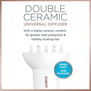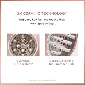 Conair Difusor universal de cerâmica dupla, acessório de secador de cabelo ajustável para cachos sem frizz para caber em bicos de secador de cabelo de 4,4 cm a 5,8 cm - Crie cachos, ondas e volume: o difusor duplo de cerâmica Conair garante que o cabelo envolva os dedos volumizadores para definir a textura e levantar o cabelo nas raízes. - Reduz danos causados pelo calor e frizz: O difusor duplo de cerâmica distribui o ar aquecido uniformemente, protegendo contra danos e eliminando o frizz para cabelos com aparência saudável. - Profundidade do difusor grande: O difusor mais profundo comporta mais cabelo. - Cachos mais suaves: a secagem controlada suaviza e adiciona brilho. - Acessório universal do difusor: cabe na maioria dos bocais de secador de cabelo de 4,4 a 5,3 cm de diâmetro.