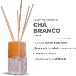 Difusor de Aromas Com Varetas 100ml Coala Chá Branco Aroma: Chá Branco Difusor de Aromas Coala Chá Branco 100ml com Varetas Difusor Coala Chá Branco 100ml com varetas. Perfuma, decora e proporciona um ambiente sofisticado. Essência suave e duradoura. Transforme qualquer ambiente com um toque de sofisticação e bem-estar. O Difusor de Aromas Coala Chá Branco é ideal para quem deseja manter sua casa, escritório ou espaço comercial sempre perfumado com uma fragrância suave e duradoura. Seu design moderno, com frasco elegante e varetas difusoras, alia beleza e funcionalidade, decorando com discrição e charme. Benefícios do Difusor Coala Chá Branco: - Perfume prolongado no ambiente - Fragrância suave, ideal para o dia a dia - Frasco com design decorativo - Acompanha varetas difusoras - Regule a intensidade com a quantidade de varetas - Pronto para uso, fácil de aplicar - Perfeito para salas, banheiros, quartos e escritórios Modo de Usar: 1- Retire a tampa e remova o lacre. 2- Recoloque a tampa externa. 3- Insira as varetas no frasco. 4- Após duas horas, vire as varetas para ativar a difusão do aroma. 5- Inverta as varetas sempre que desejar renovar a intensidade da fragrância. Para uma fragrância mais intensa, utilize todas as varetas. Para um perfume mais suave, utilize menos varetas. Informações Técnicas: - Produto: Difusor de Aromas Coala - Fragrância: Chá Branco - Volume: 100 ml - Marca: Coala Essências Aromáticas - Acompanha: Frasco com tampa + conjunto de varetas - Indicação de uso: Residencial e comercial - Uso recomendado: Aromatização de ambientes - Validade: Vide embalagem Dicas de Uso e Conservação: - Mantenha longe da luz direta do sol e fontes de calor - Evite locais com correntes de ar para não acelerar a evaporação - Não deixe ao alcance de crianças ou animais - Ideal para ambientes de até 20 m. Para locais maiores, utilize mais de um difusor A fragrância enfraqueceu, o que fazer Inverta as varetas para reativar a liberação do aroma. Quanto tempo dura o difusor Depende das condições do ambiente, mas em média de 30 a 45 dias. É possível controlar a intensidade do aroma Sim, basta ajustar a quantidade de varetas no frasco. Pode ser no banheiro Sim, é ideal para qualquer ambiente interno. Marca: Não Informado