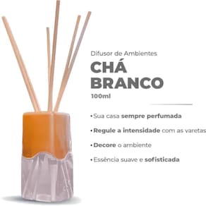Difusor de Aromas Com Varetas 100ml Coala Chá Branco Aroma: Chá Branco Difusor de Aromas Coala Chá Branco 100ml com Varetas Difusor Coala Chá Branco 100ml com varetas. Perfuma, decora e proporciona um ambiente sofisticado. Essência suave e duradoura. Transforme qualquer ambiente com um toque de sofisticação e bem-estar. O Difusor de Aromas Coala Chá Branco é ideal para quem deseja manter sua casa, escritório ou espaço comercial sempre perfumado com uma fragrância suave e duradoura. Seu design moderno, com frasco elegante e varetas difusoras, alia beleza e funcionalidade, decorando com discrição e charme. Benefícios do Difusor Coala Chá Branco: - Perfume prolongado no ambiente - Fragrância suave, ideal para o dia a dia - Frasco com design decorativo - Acompanha varetas difusoras - Regule a intensidade com a quantidade de varetas - Pronto para uso, fácil de aplicar - Perfeito para salas, banheiros, quartos e escritórios Modo de Usar: 1- Retire a tampa e remova o lacre. 2- Recoloque a tampa externa. 3- Insira as varetas no frasco. 4- Após duas horas, vire as varetas para ativar a difusão do aroma. 5- Inverta as varetas sempre que desejar renovar a intensidade da fragrância. Para uma fragrância mais intensa, utilize todas as varetas. Para um perfume mais suave, utilize menos varetas. Informações Técnicas: - Produto: Difusor de Aromas Coala - Fragrância: Chá Branco - Volume: 100 ml - Marca: Coala Essências Aromáticas - Acompanha: Frasco com tampa + conjunto de varetas - Indicação de uso: Residencial e comercial - Uso recomendado: Aromatização de ambientes - Validade: Vide embalagem Dicas de Uso e Conservação: - Mantenha longe da luz direta do sol e fontes de calor - Evite locais com correntes de ar para não acelerar a evaporação - Não deixe ao alcance de crianças ou animais - Ideal para ambientes de até 20 m. Para locais maiores, utilize mais de um difusor A fragrância enfraqueceu, o que fazer Inverta as varetas para reativar a liberação do aroma. Quanto tempo dura o difusor Depende das condições do ambiente, mas em média de 30 a 45 dias. É possível controlar a intensidade do aroma Sim, basta ajustar a quantidade de varetas no frasco. Pode ser no banheiro Sim, é ideal para qualquer ambiente interno.