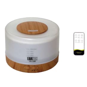 Lindo aromatizador, umidificador de ar e luminária noturna com 7 cores de luz de led no mesmo aparelho. Possui capacidade para 500ml de água e é composto de plástico imitando madeira. Ele é elétrico, funciona ligado na tomada 110v ou 220v (Bivolt). Não necessita de filtro de reposição. Possui temporizador de 2 ou 4 horas com desligamento automático. A luz pode ser desligada, deixando apenas o aromatizador. Pode fixar a cor da luz ou deixar trocando automaticamente também. Este modelo é próprio para aromaterapia, pode ser adicionado óleo essencial na água. Principais Características -próprio para óleos essenciais, proporcionando os efeitos da aromaterapia -difusão ultrassônica a frio, mantém as propriedades originais do óleo essencial -umidifica o ambiente, auxilia em dias com baixa umidade do ar -2 Modos de pulverização de névoa: contínuo ou a cada 10 segundos -lindo objeto decorativo, com 7 cores de luz em led -pode ser usado a noite durante o sono, quando a água acabar ele desliga automaticamente -com controle remoto para maior comodidade Funções do Controle Remoto -ligar/desligar -névoa contínua ou intermitente -temporizador (2h, 4h ou até acabar a agua) -névoa forte/fraca -led Informações Técnicas -alimentação: Fonte Bivolt (110v e 220v) -desligamento de Proteção por Falta de Água: Sim -aplicação: 20m -composição: Plástico ABS -ruído: 36db -capacidade: 500ml -potência: 12W -frequência: 2.4 MHZ -duração da Névoa (500ml) no modo contínuo: 8 horas Dimensões do Difusor -diâmetro: 16cm -altura: 11,5cm -peso: 400g Conteúdo da Caixa -01 Aparelho Difusor De Ambiente Elétrico -01 Manual em Português -01 Fonte 110/220 Bivolt (Cabo 1,5m) -01 Copo Medidor -01 Controle Remoto Garantia: 3 meses com a loja para defeitos de fabricação. IMAGENS MERAMENTE ILUSTRATIVA.