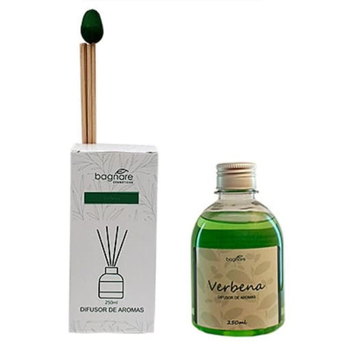 Contém: um aromatizador verbena em embalagem pet 250 ml, 5 varetas e caixa.