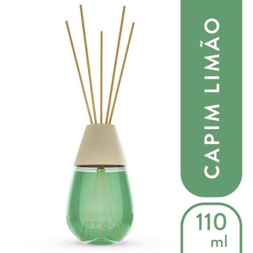 Difusor de Aromas Vedika com varetas - Capim Limão 110ml O difusor de aromas Vedika apresenta 4 variações de fragrâncias que proporcionam um ambiente mais agradável, aconchegante e confortável para você e suas visitas. Além de ajudar na sua rotina de autocuidado e bem-estar.