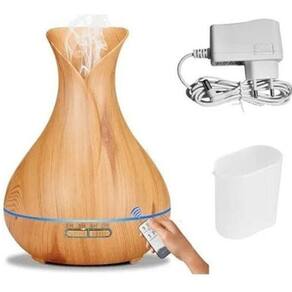 Difusor De Óleos Essenciais Umidificador Vaso 400ml Controle Cor: Madeira Clara Difusor de Óleos Essenciais E Umidificador de Ar 400ml com Controle