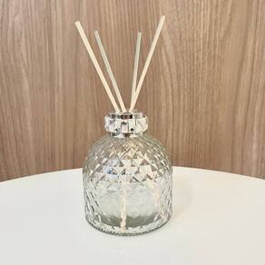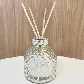 Decoração sala quarto difusor de vidro branco/ transparente trabalhado com varetas e detalhe pedrarias.