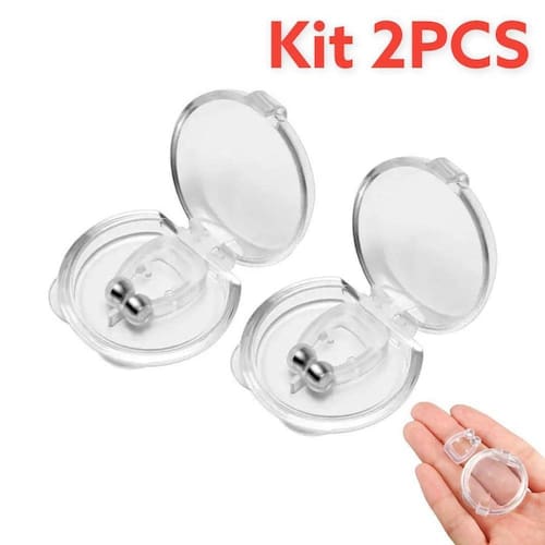 Alívio para você e sua família - o magnetismo do clipe ativa a circulação sanguínea, com isso gera um melhor fluxo de ar e uma consequente melhora da respiração, acabando de vez com o ronco. - com o clipe nasal você irá parar de roncar de vez, sem interferir no ciclo normal de seu sono. - combate a apneia: melhora a circulação nas vias aéreas superiores. - melhora a qualidade do sono: acorde mais descansado e com mais ânimo - se encaixa suavemente nas narinas, mantendo-as afastadas e tornando a respiração mais fácil e silenciosa. O segredo para uma boa noite de sono estava debaixo do seu nariz o tempo todo Além dos incômodos para a própria pessoa, isso gera muito transtorno em pessoas próximas, que dormem no mesmo quarto, namorados ou casados. Como funciona: Os imãs (Elementos) inseridos nas pontas tem a função de um dilatador nasal , fazendo com que as laterais das narinas não se estreitem quando você respirar profundamente . Dessa forma , quando você respira o ar consegue circular de maneira adequada as vias áreas superiores melhorando ate mesmo a qualidade do seu sono . Especificações técnicas: Material: silicone cirúrgico Peso: 5.5g Cor: transparente Pacote inclui: 2x dilatadores nasais 1x estojo de armazenamento
