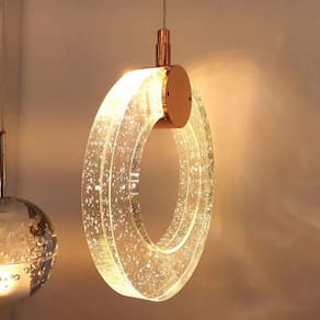 ESPECIFICAÇÕES TÉCNICAS: Estrutura em Metal Rose + Cristal Transparente. Medidas: 20cm(L) x 20cm(A). Altura máxima do cabo: 150cm. Potência: 6W. Temperatura de cor: 3000K.