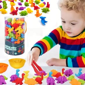 Transforme a diversão em aprendizado com o DINO PEGA-SEPARA! Este brinquedo educativo vem com pequenos dinossauros coloridos e tigelas correspondentes para separação, tornando a brincadeira um momento de aprendizado interativo.