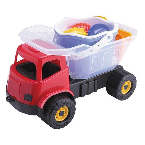 Este super caminhão zinho vem para deixar a praia ou o quintal ainda mais divertido para criançada, poi além do carrinho vem também baldinho com peneira e forminhas para moldar terra ou areia!