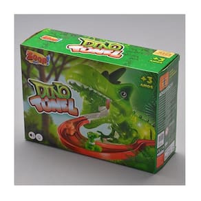 O Dino túnel tem um super escorrega para os mini dinossauros É super divertido Emite sons e luzes O brinquedo auxilia no desenvolvimento cognitivo da criança. Recomendado para crianças com +3 anos. Alimentação: 3 pilhas AA não inclusas