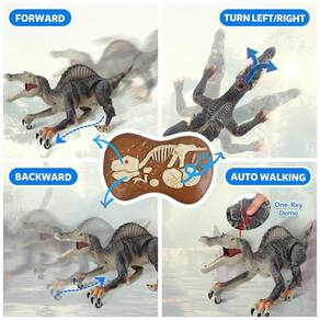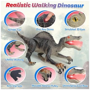 Este robô dinossauro é uma excelente opção para crianças a partir de 3 anos que adoram se divertir com brinquedos interativos. Com movimentos realistas, ele caminha, emite rugidos autênticos e ainda pode borrifar jatos pela boca, o que torna a brincadeira ainda mais divertida. Além disso, o robô dinossauro acende e balança a cabeça e a cauda, o que aumenta o apelo visual e torna a experiência ainda mais envolvente. A bateria de longa duração garante horas de diversão, tanto em ambientes internos quanto externos, e o fato de ser recarregável torna o brinquedo ainda mais conveniente. A montagem é fácil e rápida, sem a necessidade de ferramentas complicadas ou acessórios adicionais. Este robô dinossauro é um presente de aniversário ideal para crianças que adoram dinossauros e brinquedos interativos. Com certeza, elas vão adorar controlar e interagir com seu próprio Spinosaurus que ruge e pulveriza.