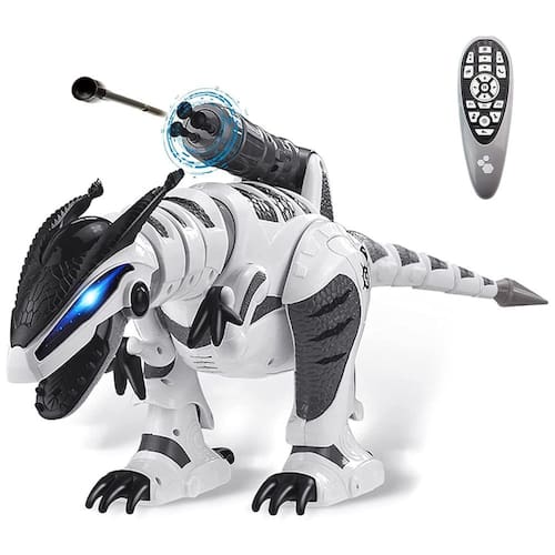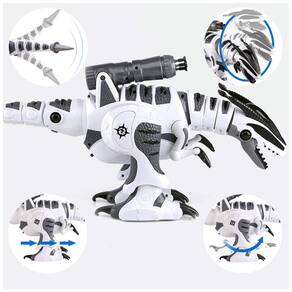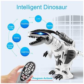 Multi função O brinquedo de dinossauro interativo inteligente T REX com recurso programável e sensor de toque, pode andar, cantar, dançar, rugir e balançar a cauda e a cabeça. É como um animal de estimação eletrônico trará diversão sem fim para seus filhos. Controle de toque Toque na testa do seu dinossauro RC para interagir com ele, ele balançará a cabeça, abanando o rabo e fará som ou use o controle remoto para dar comandos ao seu brinquedo de dinossauro robô. Fácil de jogar para crianças de 3 anos ou mais. Modo de luta de dinossauro Pressione o modo de luta no controle remoto e seu robô de dinossauro tiranossauro se preparará para a batalha. Ele fará um som realista, flash de luz e atirará dardos de suas costas. Além disso, as teclas de controle de volume estão disponíveis, volume ajustável de 5 alavancas, muito conveniente. Ação de programação A função de programação ajudará seu filho a domar o dinossauro t rex. O RC Dino Toy com função de programação. Depois de entrar na programação, ele executará as ações conforme você programou uma a uma ao pressionar a tecla funcional. Grandes presentes do festival para crianças O dinossauro robô RC com tamanho grande 63 x 30 x . Faça deslizar e andar Marca: Não Informado