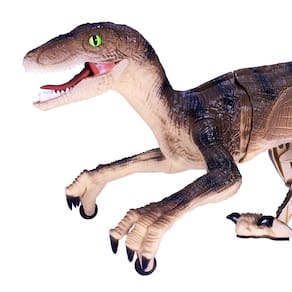 Dinossauro com movimentos e som. Utliza controle remoto de 7 funções. Funcionamento a bateria recarregável com carregar USB incluso e 2 pilhas AA para o controle não inclusas.