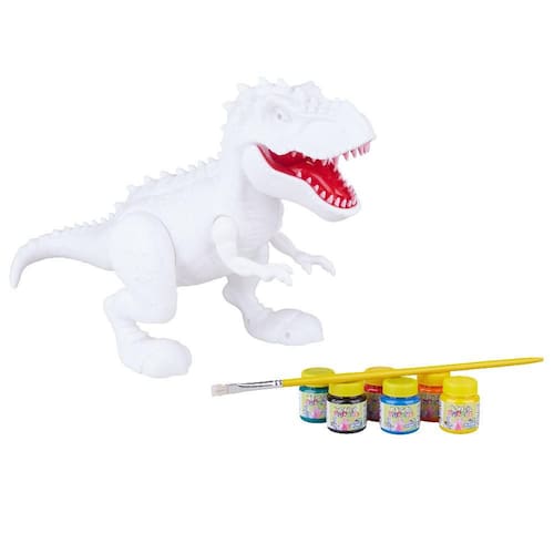 Com o Dinossauro TRex Attack Pintura Adijomar você vai poder pintar da cor que você quiser. Com 6 potes tinta guache de cores diferentes e pincel, você pode personalizar a cor do seu dino de várias formas, Todo o corpo é lavável, podendo criar mais pinturas quantas vezes quiser! Diversão segura e garantida.