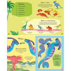 Dinossauros para Montar | Editora Usborne | Livro Infantil Interativo Mergulhe na era dos dinossauros com este incrível Livro Interativo: Monte Dinossauros em papel! Mais do que um simples livro, ele traz peças pré-cortadas de papelão resistente para montar cinco modelos impressionantes: Tiranossauro, Parassaurólofo, Tricerátope, Braquiossauro e Estegossauro. Cada cartela inclui uma página repleta de curiosidades fascinantes sobre os dinossauros, tornando o momento da montagem ainda mais educativo. E o melhor? Os modelos podem ser desmontados e guardados novamente no livro, facilitando o armazenamento e garantindo muitas aventuras jurássicas sempre que quiser! Por que escolher este livro? Raciocínio lógico: Seguir instruções de montagem estimula o pensamento estratégico e a solução de problemas. Coordenação motora fina: Encaixar as peças desenvolve o controle dos pequenos músculos das mãos, essenciais para a escrita. Coordenação visomotora: A combinação entre visão e movimento durante a montagem fortalece essa habilidade essencial. Criatividade e imaginação: Após montar os dinossauros, as crianças podem criar cenários e histórias incríveis. Atenção e concentração: O processo de montagem exige foco e paciência, fundamentais para o desempenho escolar. BNCC na Prática e Dicas Extras de Brincadeiras Brincadeira: “Era dos dinossauros” Monte os dinossauros e crie um cenário pré-histórico com plantas, rios e vulcões. A criança pode explorar conceitos de geografia, história e ciências enquanto se diverte. Brincadeira: “Caça aos Fósseis” Esconda partes dos dinossauros desmontados e convide a criança a "escavar" e encontrar as peças, simulando o trabalho dos paleontólogos. Brincadeira: “Quem sou eu?” Descreva um dinossauro sem dizer o nome: "Tenho placas nas costas e um rabo espinhoso". A criança deve adivinhar qual é e pegar o modelo correspondente. Brincadeira: “Contos Jurássicos” Após montar os dinossauros, incentive a criança a criar uma história sobre um dia na vida dos dinossauros, desenvolvendo a linguagem oral e a criatividade.
