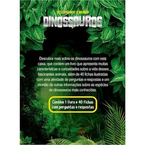 Descubra mais sobre os dinossauros com esta caixa, que contém um livro que apresenta muitas características e curiosidades sobre a vida desses fascinantes animais, além de 40 fichas ilustradas com uma atividade de perguntas e respostas e um montão de outras informações sobre as espécies de dinossauros mais conhecidas.