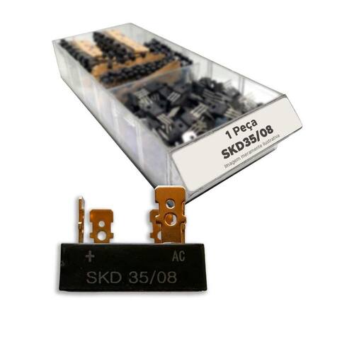 - Modelo: SKD 35/08 - Tipo: Ponte retificadora trifásica - Número de terminais: 5 - Corrente média direta If av : 35 A - Tensão reversa máxima VRRM : 800 V - Polaridade: AC entrada e + / - saída DC - Encapsulamento: Módulo de potência - Aplicações: Fontes industriais, sistemas de potência, retificadores de alta corrente. Marca: Não Informado