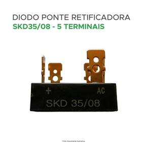 - Modelo: SKD 35/08 - Tipo: Ponte retificadora trifásica - Número de terminais: 5 - Corrente média direta If av : 35 A - Tensão reversa máxima VRRM : 800 V - Polaridade: AC entrada e + / - saída DC - Encapsulamento: Módulo de potência - Aplicações: Fontes industriais, sistemas de potência, retificadores de alta corrente. Marca: Não Informado