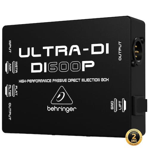 O Direct Box Behringer DI600P é ideal para adequações de impedância. Dessa forma, é possível conectar um instrumento diretamente no seu Mixer sem perder qualidade no tom, além de converter qualquer entrada de linha desbalanceada em saída de mic balanceada. O DI600P conserva a integridade do sinal e permite utilização de cabos longos sem perder potência nas frequências. Ainda possui seletor de filtro que reduz zumbidos e entrada selecionável para conectar instrumentos ou amplificadores com saídas de até 3000 Watts.