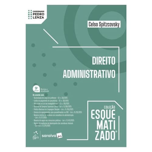 “Para o direito administrativo, tivemos a honra de contar com o extraordinário trabalho de Celso Spitzcovsky, que soube, com maestria, aplicar a metodologia Esquematizado à sua vasta e reconhecida trajetória profissional. Mestre em Direito do Estado pela PUC-SP, Professor de Direito Administrativo e Eleitoral no Damásio Educacional, Coordenador do curso de Pós-graduação lato sensu , em agentes públicos, da Legale Educacional, com larga experiência, advogado militante e palestrante nas áreas de Direito Constitucional, Administrativo e Eleitoral, Celso, sem dúvida, foi o nome mais que certo para essa importante e estratégica matéria. O Professor Damásio, com precisão, bem observava que este livro ‘supera a sua função didática para apresentar ao Advogado, Juiz, Promotor, enfim, a todos os militantes da atividade administrativa, conhecimentos precisos e atualizados’. (...) Estamos certos de que este livro será um valioso aliado para ‘encurtar’ o caminho dos candidatos de concursos públicos, além de ser uma ferramenta indispensável para estudantes de Direito e profissionais em suas atividades diárias.” Pedro Lenza