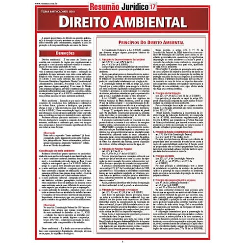 Princípios e definições do Direito Ambiental. Evolução da proteção ambiental. Dispositivos legais relativos ao meio ambiente. A Política Nacional do Meio Ambiente. O Sistema Nacional do Meio Ambiente. Licenciamento ambiental. As diferentes tutelas do meio ambiente. Aspectos da responsabilidade civil ambiental. Tutela administrativa. Tutela penal. Tutela jurisdicional do meio ambiente: ação civil pública, ação popular, mandado de segurança, mandado de injunção, ação direta de inconstitucionalidade ou ato normativo e ação direta de constitucionalidade.