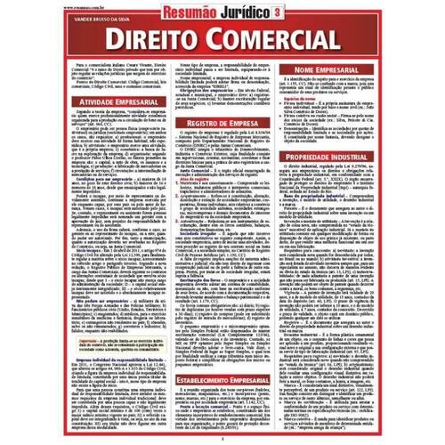 Fontes do Direito Comercial. Atividade empresarial. Registro de empresa. Junta comercial. Escrituração dos livros. Estabelecimento e nome empresarial. Propriedade industrial. Direito societário: sociedade não personificada, sociedade personificada simples, sociedade personificada empresária, sociedade em nome coletivo, sociedade em comandita simples. Sociedade limitada. Sociedade anônima. Sociedades coligadas. Títulos de crédito: letra de câmbio, nota promissória, cheque, duplicata. Contratos mercantis. Falência e recuperação judicial. Marca: Não Informado