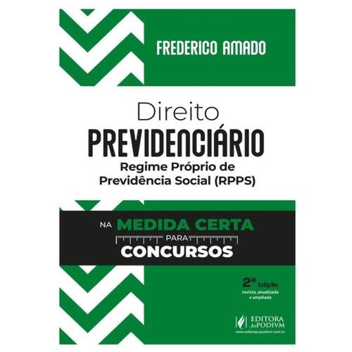 CONFORME: • Lei 14.875/2024 — Cria as carreiras de Especialista em Indigenismo, de Técnico em Indigenismo e de Tecnologia da Informação • Jurisprudência do STF E STJ até janeiro de 2025. POR QUE ESCOLHER O LIVRO “DIREITO PREVIDENCIÁRIO NA MEDIDA CERTA PARA CONCURSOS”? Esta obra visa a uma preparação rápida e eficaz para os concursos públicos, por meio da abordagem objetiva da normatização do Regime Próprio de Previdência Social (RPPS), sempre instruída com a jurisprudência especialmente do STF e do STJ. Foram contemplados os seguintes temas: Introdução ao estudo dos Regimes Próprios de Previdência Social; Regras gerais nacionais aplicáveis ao Regime Próprios da União, estados, Distrito Federal e municípios, em especial à luz da Reforma da Previdência (Emenda 103/2019); Regras específicas do Regime Próprio da União. Desta forma, a obra é focada em concursos básicos que cobrem o estudo do Regime Próprio de Previdência Social. O livro já ingressa desde a 1ª edição na coleção “Na Medida Certa para Concursos” da Editora Juspodivm, pois atende ao perfil de ser uma obra objetiva e eficaz para a preparação para concursos públicos. Bons estudos a todos! Frederico Amado Marca: JUSPODIVM *