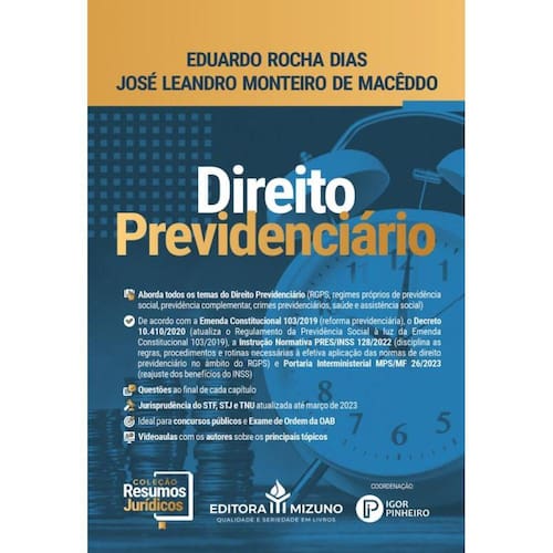 O Direito Previdenciário é disciplina obrigatória nos cursos jurídicos e é cobrada no Exame de Ordem da OAB, integrando, também, o conteúdo programático de vários concursos públicos, como para a AGU, Magistratura Federal, Ministério Público do Trabalho, Defensoria Pública da União, Receita Federal do Brasil, INSS, PREVIC, SUSEP, dentre outros. Nesse contexto, a presente obra tem por finalidade principal abordar, de maneira clara, concisa e objetiva, todos os temas de Direito Previdenciário cobrados nos principais concursos públicos em que essa disciplina integra o conteúdo programático, bem como no Exame de Ordem da OAB. O livro aborda a teoria geral do Direito Previdenciário, as prestações previdenciárias do Regime Geral de Previdência Social, as fontes de custeio da seguridade social, os crimes previdenciários, a previdência privada, a previdência social do servidor público, de acordo com as Emendas Constitucionais 20/1998, 41/2003, 47/2005 e 103/2019, a saúde e a assistência social. Percebe-se, assim, que se trata de um livro que contempla todos os temas do Direito Previdenciário, realçando os entendimentos administrativo e judicial sobre esses temas. Ao final de cada capítulo, são apresentadas questões para a consolidação do entendimento do conteúdo estudado. Esta obra tem como um dos seus principais objetivos abordar, de maneira didática e atualizada, todos os temas de relevância para o Direito Previdenciário. Almeja-se oferecer ao estudante que se inicia na matéria e aqueles que irão prestar concursos públicos nos quais o Direito Previdenciário integra o conteúdo programático, aí incluído o Exame de Ordem da OAB, as bases conceituais e normativas e o entendimento da jurisprudência acerca dos principais pontos de tão relevante ramo do ordenamento jurídico. Espera-se dotar o leitor das ferramentas indispensáveis à interpretação e à aplicação das normas referentes ao assunto, no contexto dos concursos públicos em que o Direito Previdenciário é objeto de cobrança. Leia mais