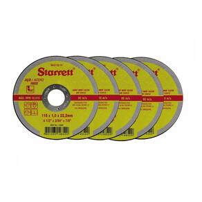 Compre agora o Disco Abrasivo de Corte 115mm DAC11514 com 05 pçs Starrett e tenha em mãos uma ferramenta de qualidade para realizar cortes precisos e rápidos em materiais de aço carbono e aço inox. Garanta já o seu! Ean: 7891265148520