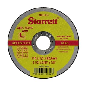 O Disco Abrasivo de Corte 115mm DAC11514 com 05 pçs Starrett é a escolha perfeita para profissionais que buscam por um disco de corte de alta qualidade e durabilidade. Sua marca renomada no mercado garante a confiabilidade e a eficiência do produto.