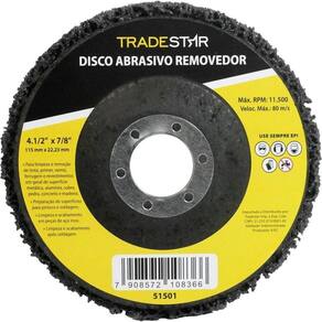 Principais Características do Produto 0 (bullet_point#0): Fabricado em material de alta qualidade e resistência | Principais Características do Produto 1 (bullet_point#1): Ideal para e doméstico | Principais Características do Produto 2 (bullet_point#2): Proporciona maior durabilidade e eficiência no trabalho | Baterias são necessárias? (batteries_required): Não | Certificação de teste externa (external_testing_certification): CE | included_components: Disco Abrasivo Removedor 115 x 22,23 mm Tradestar | manufacturer: Tradestar | number_of_items: 1 | power_source_type: Manual | required_product_compliance_certificate: CE | unit_count: 1 | number_of_boxes: 1 | material : | model_number: | item_length_width_height: | part_number: | deprecated_offering_start_date : | is_expiration_dated_product: | warranty_description: | item_dimensions: | color: | measurement_accuracy: | voltage: