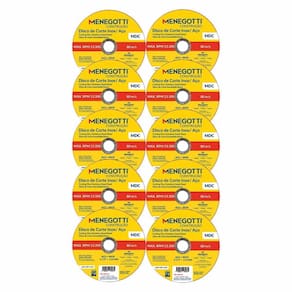 O Disco de Corte Inox / Aço 115mm Com 10 Unidades MDC 63030119 - Menegotti, é a escolha ideal para cortes precisos e eficientes em metais. Indicado especialmente para cortar aços e suas ligas, incluindo aço inoxidável, este disco oferece alta performance, durabilidade e segurança durante o uso. Projetado para e industrial, o produto garante excelente rendimento em aplicações que exigem resistência e acabamento de qualidade. Com 115 mm de diâmetro, é compatível com esmerilhadeiras angulares e proporciona cortes rápidos, limpos e com menor geração de rebarbas. Características: Ideal para operações de corte que necessitam de excelente acabamento corte fino . Proporciona cortes rápidos e menos rebarba. Não utilizar em serra mármore. Uso exclusivo em esmerilhadeiras de 4.5'' , 7'' , 9''. Elaborado com duas telas de fibra de vidro para maior segurança. Uso semiprofissional, e industrial. Descrição do Produto: Medida mm x pol : 115mm - 4.5. Espessura. Do Disco Pol : 1,0mm - 3/64. Rotação Rpm : 13.300. Contém 10 Unidades na Embalagem. Referência: 63030119. Cód. De Fábrica: 63030119. Marca: Menegotti. Marca: Não Informado