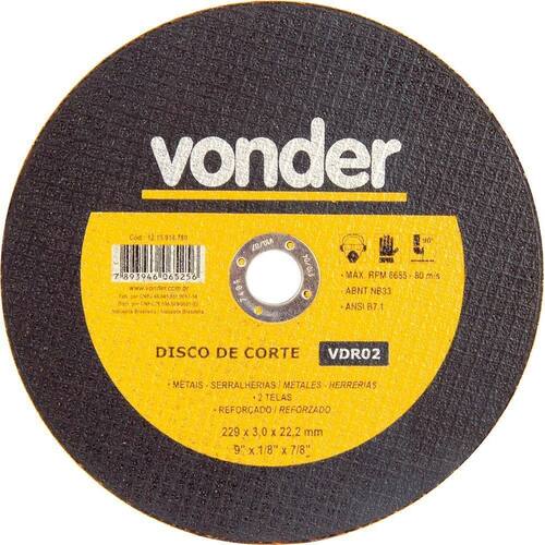 Conteúdo da embalagem1 Disco de corteAplicações e dicas de usoPara cortes de aços e materiais ferrosos barras, tubos e chapas , manutenções e reparos leves, indicado para serralheiros e usuários em geral.Destaques e diferenciaisPossui excelente performance em trabalhos intermitentes DETALHES TÉCNICOS Diâmetro do disco de corte: 230 mm - 9 Espessura do disco de corte: 3,0 mm - 1/8 Diâmetro do furo do disco de corte: 22,23 mm - 7/8 Número de telas do disco: 2 telas Rotação máxima do disco: 6.685 rpm Norma de referência: ABNT NBR 15230 Marca: Não Informado Ean: 7893946099268