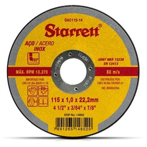 Disco abrasivo de corte 4 ½” (115mm), para materiais em aço carbono e aço inox, tais como tubos, chapas, perfis, barras e outros materiais ferrosos.